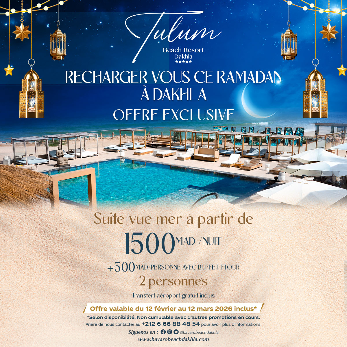 Vivez Dakhla en famille, entre océan, lagune et désert. Séjour en lodge 2 chambres avec petit-déjeuner buffet et transferts aéroport inclus. Au programme : safari 4×4 à la Dune Blanche & Source d’Asmaa et circuit quad « sunset » (1 h, 2 quads biplaces). Accès aux piscines du resort et à la plage privée de notre partenaire Bavaro Beach (à 10 min). Des souvenirs partagés, sans la moindre logistique.